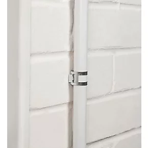 Combines fire performance, quick fix and a modern look. Can be secured by only one fixing in base. Prevents cables from dropping in fire conditions up to 970°C for 2 hours. High performance steel is simple to wrap tightly around the conduit, perfectly forming the same shape. The tab is easy to thread through the slot, then fold to lock. Oval base hole enables adjustment to the left or right side.