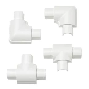 Smooth-fit tees and flat bends designed for use with D-Line micro trunking. ABS construction. Flat bends neatly join lengths on flat surfaces and equal tees join 3 micro trunking lengths.