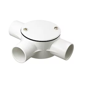 Robust, heavy gauge material. Joins conduit at a T-junction. Allows the fitting of round accessories.
